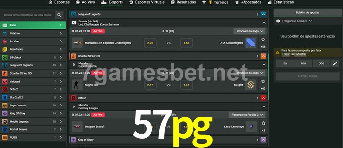 O 57pg oferece uma grande seleção de opções de apostas em e-sports com probabilidades competitivas